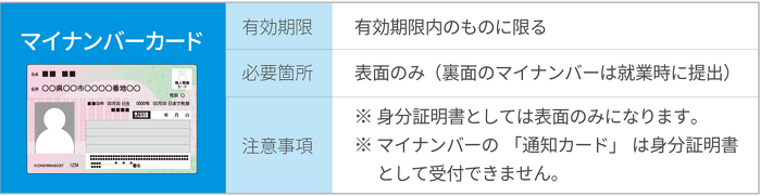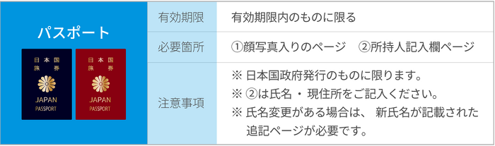 ※ 氏名と現住所の記載があり、有効期限内の書類をご用意ください。